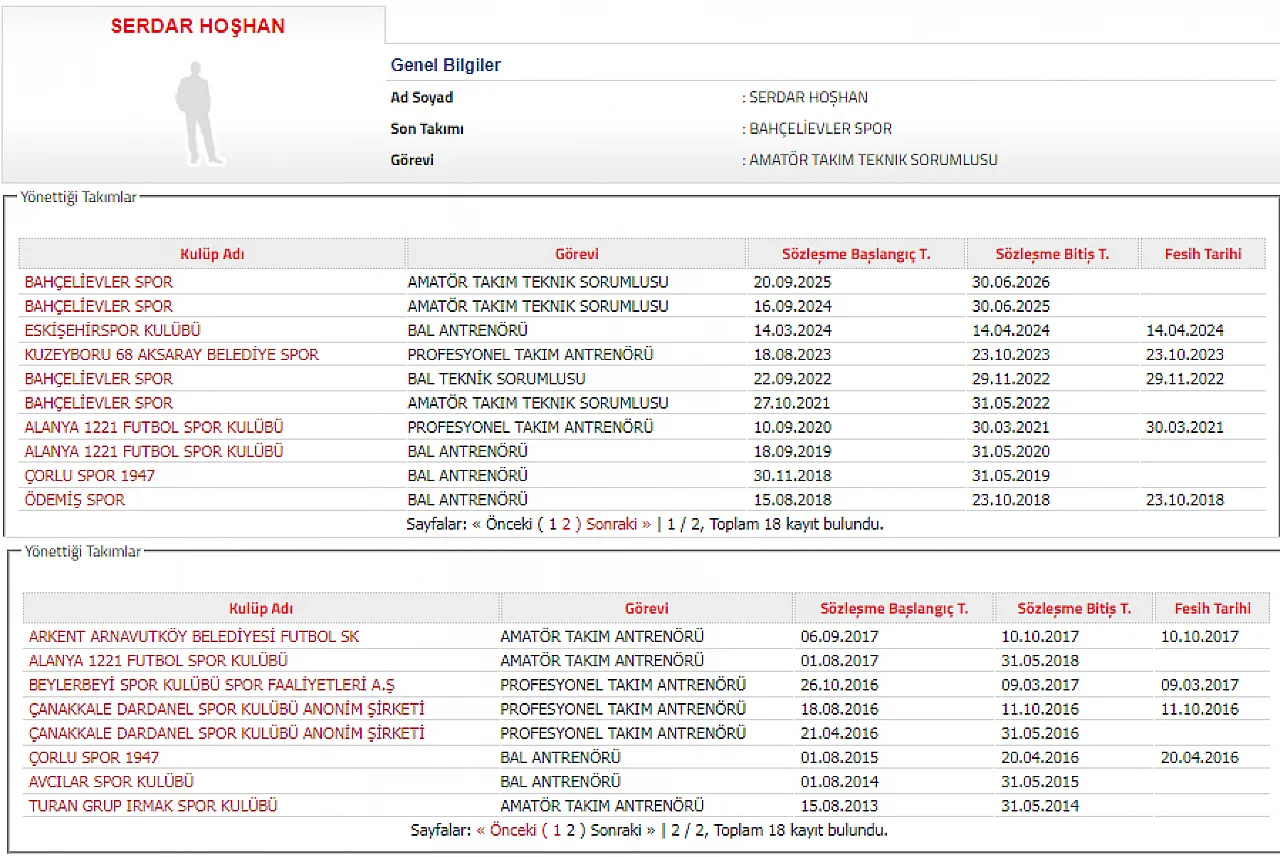 Türkiye Futbol Federsyonu resmi internet sitesinde Serdar Hoşhan ile ilgili şu bilgiler yer alıyor: