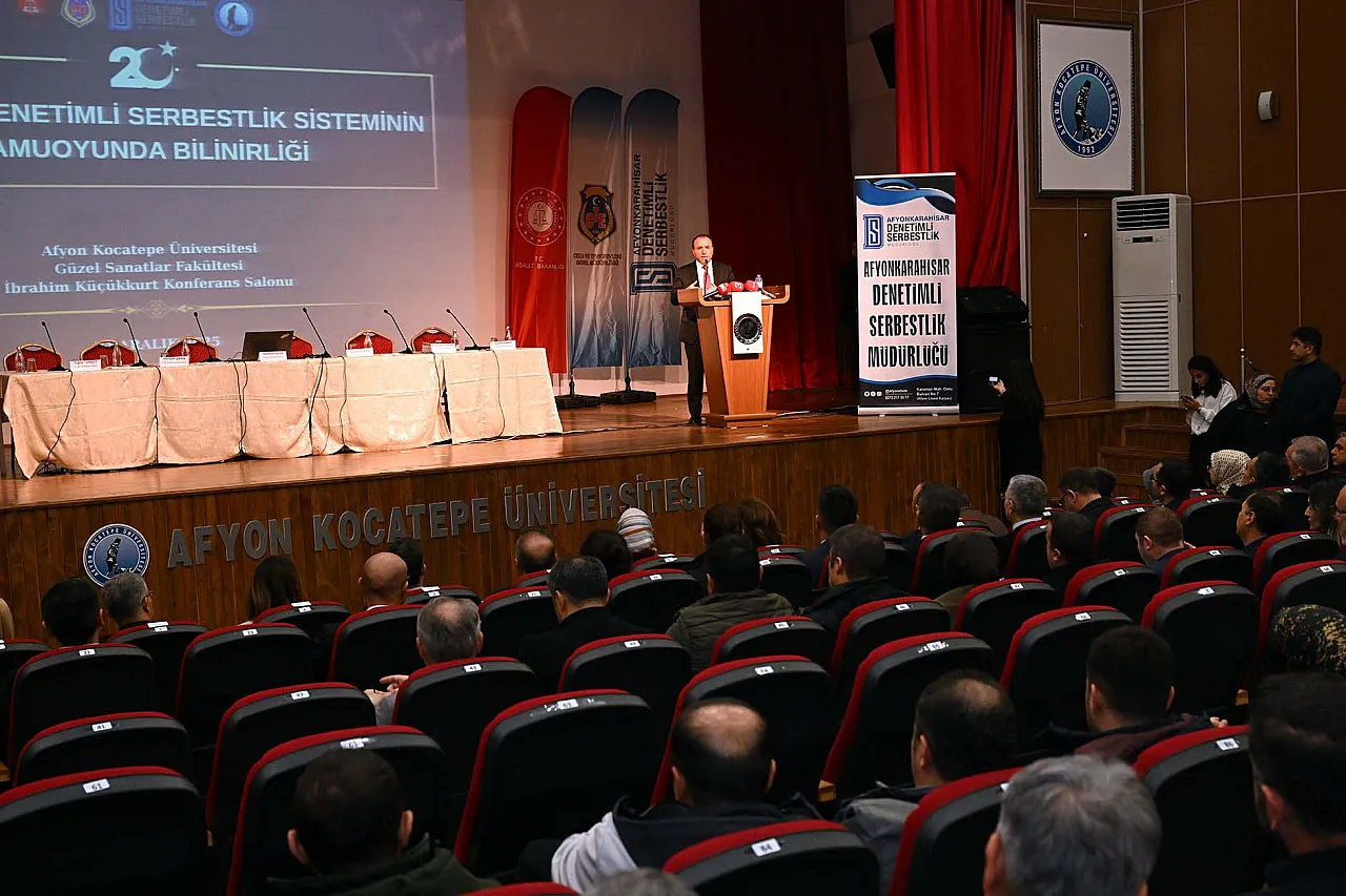 Afyon Kocatepe Üniversitesi (AKÜ), Afyonkarahisar Cumhuriyet Başsavcılığı ve Afyonkarahisar Denetimli Serbestlik Müdürlüğü iş birliğinde Türk adalet sistemine entegrasyonunun 20. yılı geride kalan Denetimli Serbestlik uygulamasının hukuki, sosyolojik ve toplumsal etkilerinin ele alındığı '20. Yılında Denetimli Serbestlik Sisteminin Kamuoyunda Bilinirliği' paneli düzenlendi.