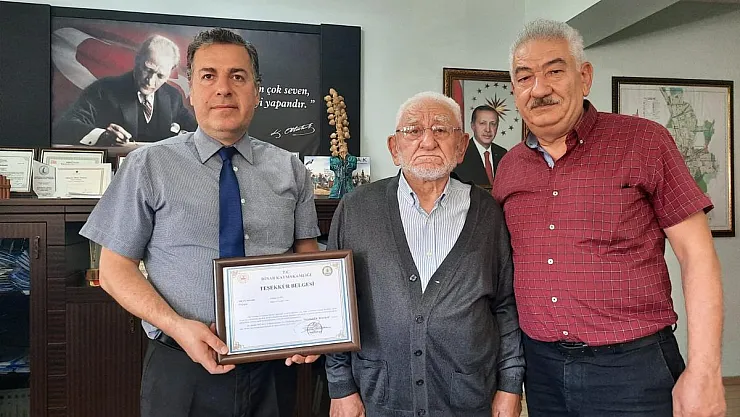 İlçe Kaymakamı Selami Kapankaya, 50 yıldan fazla ilçeye sanatı ve esnaflığı ile hizmet etmiş 84 yaşındaki Burhan Şahin Usta’nın mahallinin gazeteye verdiği ilandan etkilendiğini belirterek o güzel örnek davranışından dolayı yılların ustasını teşekkür belgesi ile ödüllendirdiğini belirtti.