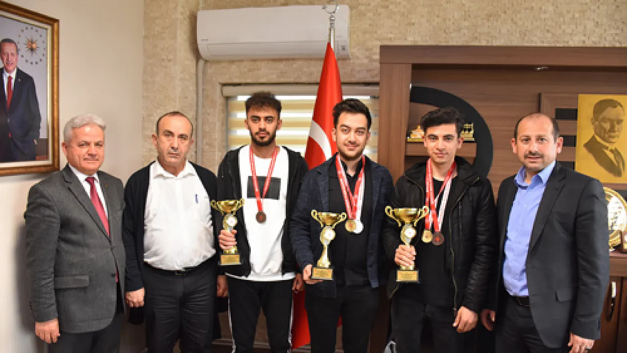 Öğrenciler aldıkları kupa ve madalyalarla birlikte Gençlik ve Spor İl Müdürü Feyzullah Dereci’yi ziyaret etti.
