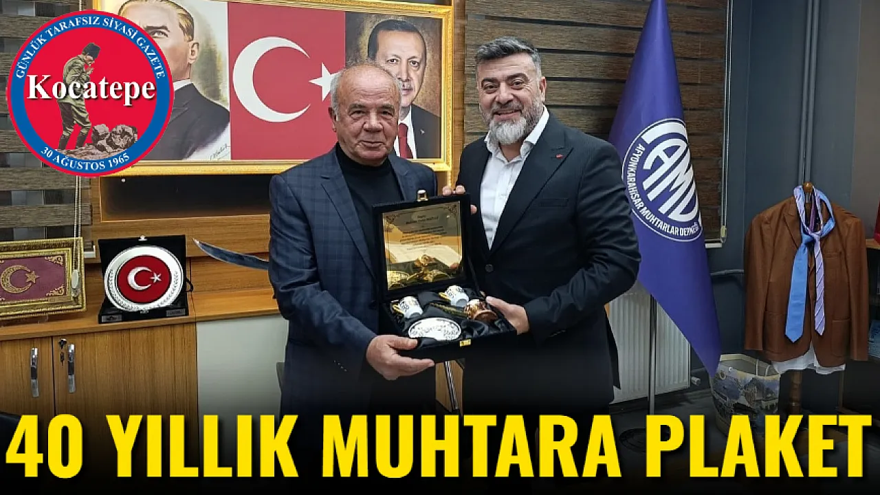 Afyonkarahisar'da Muhtarlar Derneği Başkanı Suat Uygur Dervişpaşa Mahalle Muhtarı Vedat Boztay'a 40 yıldır muhtarlık yapması nedeniyle plaket takdim etti.