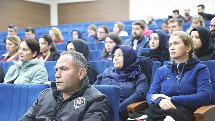 Tıp Fakültesi Mavi Salonda, BİDB Şube Müdür V. Nigar Koç’un açılış konuşması ile başlayan eğitimde, Şube Müdür V. Öğr. Gör. İsmail Arık, Öğr. Gör. Abdülkadir Kelekçi ve Mühendis Andaç Zehra Demirekin farklı boyutlarıyla siber güvenlik konusunu ele aldı.