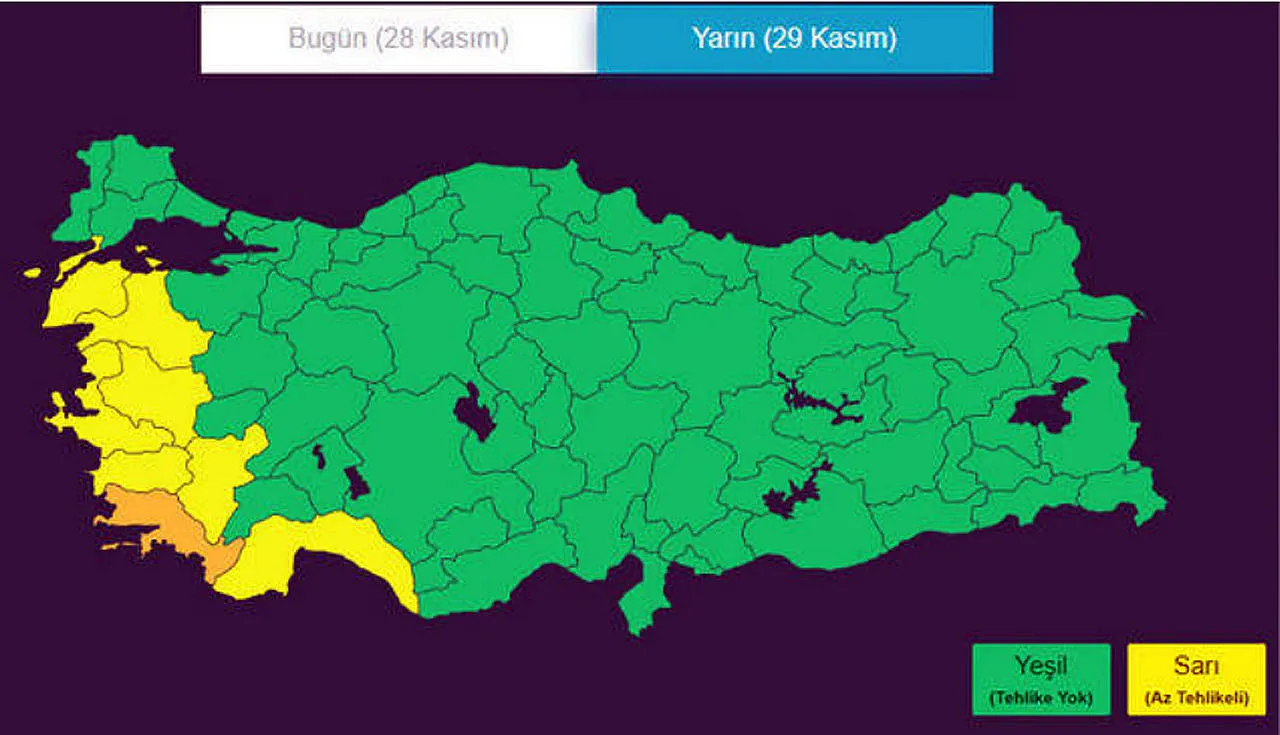Meteoroloji tarafından Muğla için turuncu, İzmir, Antalya, Aydın, Balıkesir, Çanakkale, Denizli ve Manisa için sarı alarm verilerek sağanak uyarısında bulunuldu.