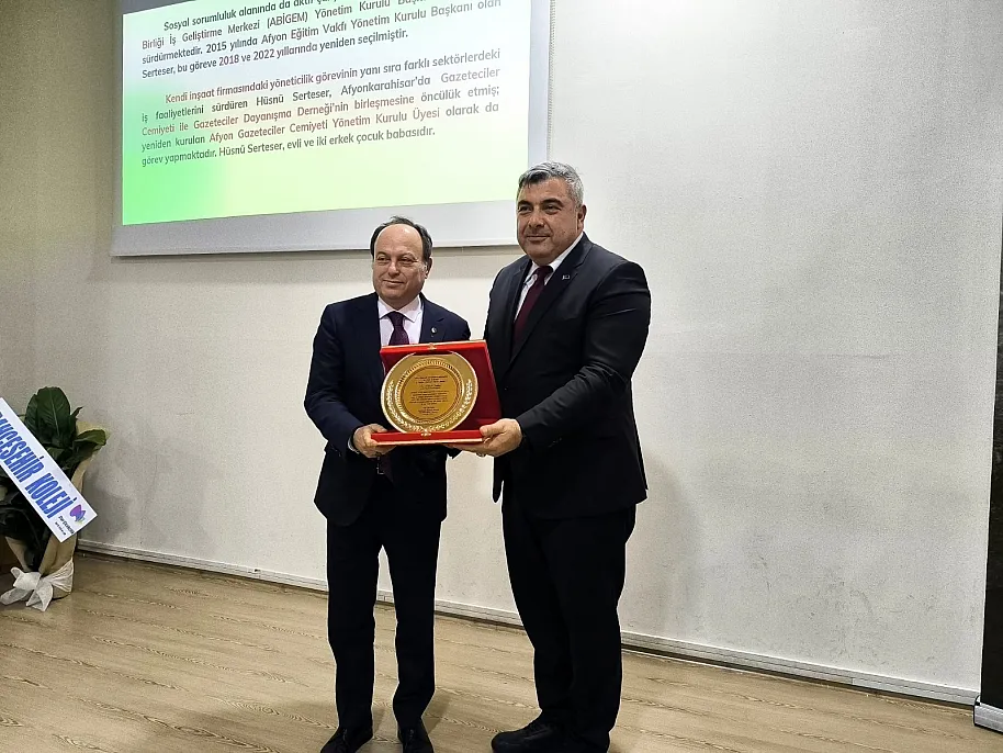 Günün sürprizi ise ödül töreninin sonunda yaşandı. ADD Afyonkarahisar Şube Başkanı Veli Cengiz, “Geçen yılki ödül törenimizde Sayın Valimiz ile el ele sahneye çıkmıştık.