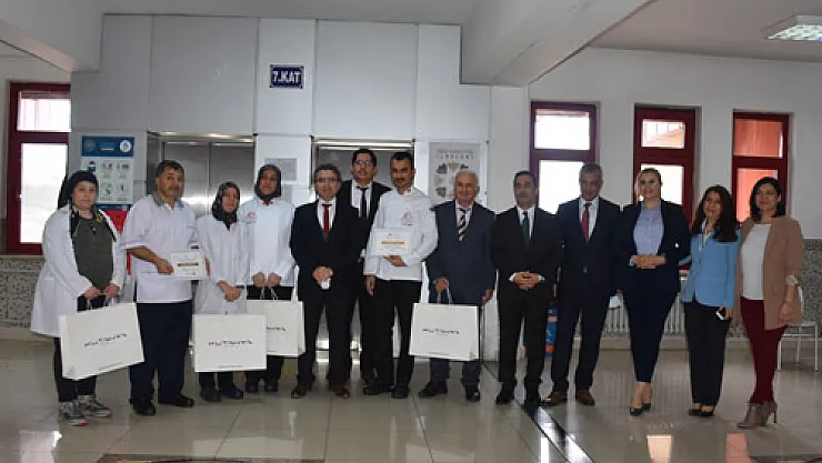 Cumhuriyet Başsavcısı Fatih Karabacak, yemeğinin ardından yemekhane personeline pandemideki gayretli çalışmalarından dolayı teşekkür belgesi takdim etti.