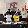 AFJET Afyonspor’un Yönetim Kurulu Üyesi Halil İbrahim Özkaya ve oyuncular İl Emniyet Müdürü Ali Temiz’e forma hediye etti