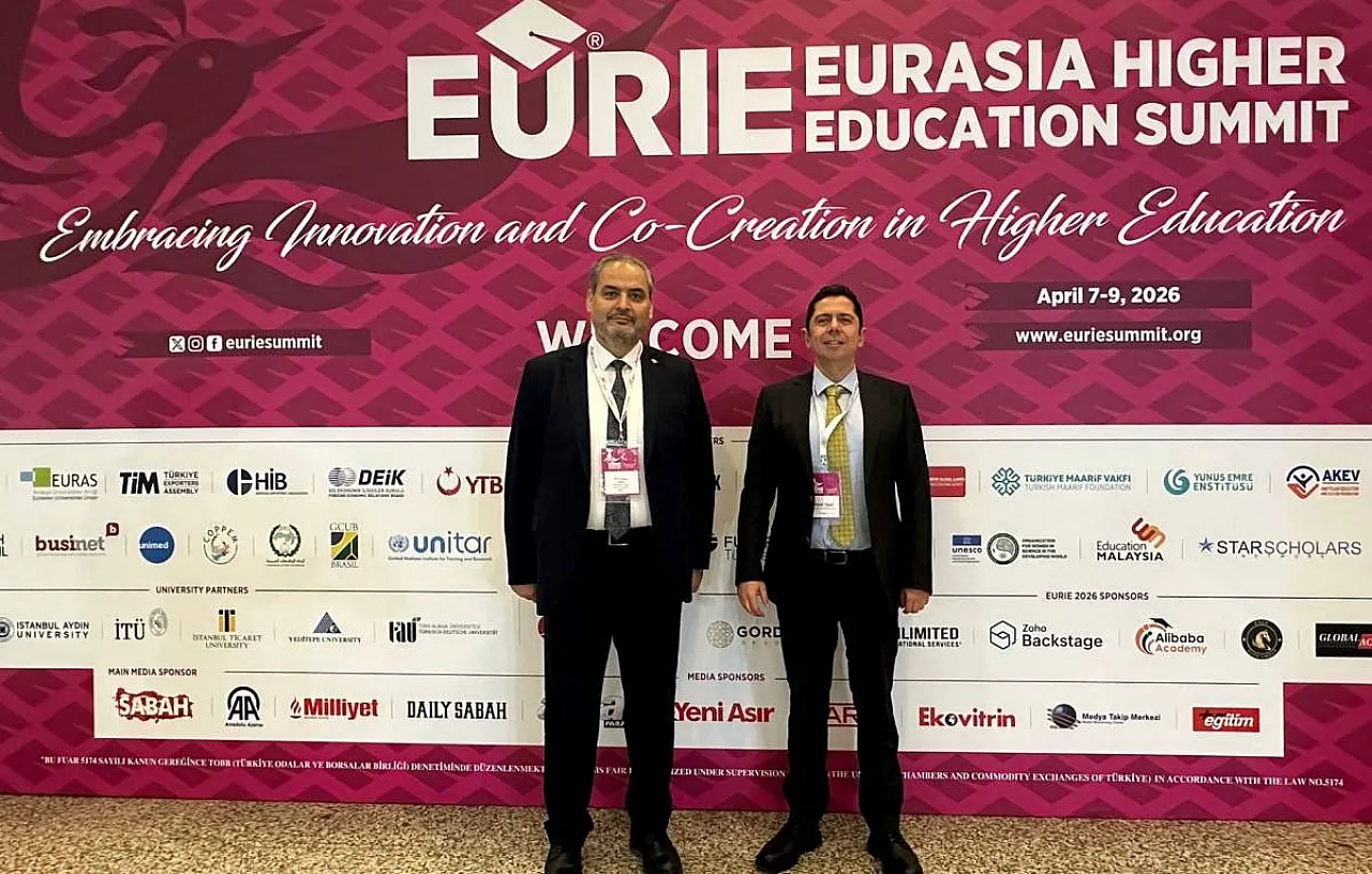 Afyonkarahisar Sağlık Bilimleri Üniversitesi (AFSÜ) Rektörü Prof. Dr. Adem Aslan ve AFSÜ Uluslararası İlişkiler Uygulama ve Araştırma Merkezi Müdürü Doç. Dr. Murat Yeşil, Avrasya Yükseköğretim Zirvesi (EURIE) 2026'nın açılış programına katıldı.