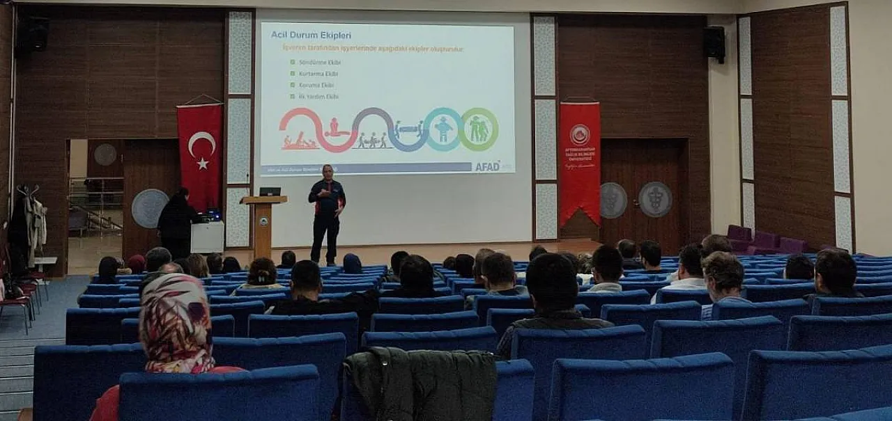 AFAD personeli, Hasan Açıkalın ve Ekrem Ayazoğlu tarafından verilen eğitimde sırasıyla AFSÜ Hastanesi Arama ve Kurtarma Ekibine teorik eğitim, hasta tahliyesi ve tahliyelerde kullanılacak araçlar için uygulama eğitimi, AFSÜ Hastanesi İtfaiye Ekibi için teorik eğitim, göster anlat yöntemiyle yangın esnasında kullanılacak ekipmanların giyilmesi ve kullanılmasının ardından kontrollü ve kısmi yangında yangın söndürücülerin ve hortumların kullanımı uygulamalı şekilde iki gün boyunca anlatıldı.