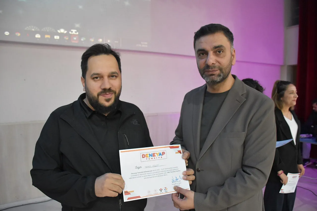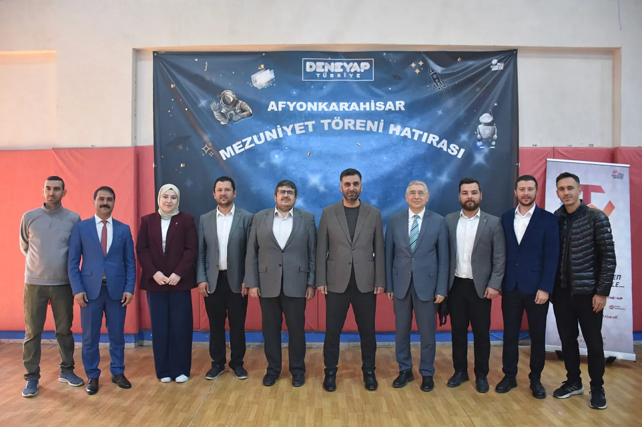 Bu kapsamda, Afyonkarahisar Deneyap Teknoloji Atölyesi’nde eğitimlerini başarıyla tamamlayan 53 öğrenci, düzenlenen mezuniyet töreninde büyük bir gurur ve mutluluk yaşadı. Öğrencilere başarı belgeleri; Gençlik ve Spor İl Müdürü Nedim Aslan, Sanayi ve Teknoloji İl Müdür Vekili Abdurrahman Topatan, Gençlik Hizmetleri Müdürü Ahmet Ertürk, T3 Vakfı Afyonkarahisar İl Sorumlusu Mustafa Yalçın, KOSGEB KOBİ Uzmanı Buğra Uçakcıoğlu ile Afyonkarahisar ve Karahisar Gençlik Merkezi Müdürleri tarafından takdim edildi.