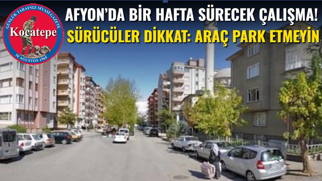Afyonkarahisar Belediyesi, Cumhuriyet Mahallesi'nde yapılacak çalışma nedeniyle sürücülere yol kenarlarına araç park etmemeleri uyarısında bulundu.