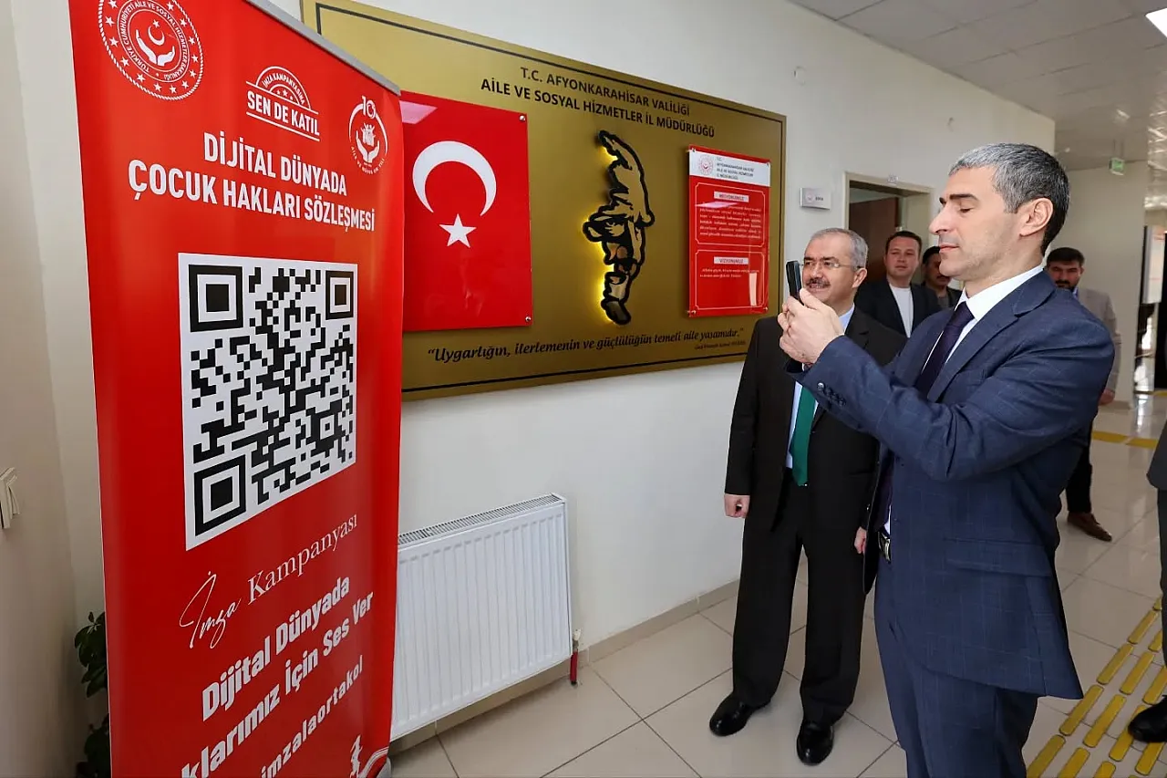Afyonkarahisar Valisi Dr. Naci Aktaş, çocukların dijital dünyada güvenli, bilinçli ve hakları korunarak var olabilmeleri amacıyla Aile ve Sosyal Hizmet Bakanlığı tarafından hazırlanan Dijital Dünyada Çocuk Hakları Sözleşmesi’ni imzaladı.