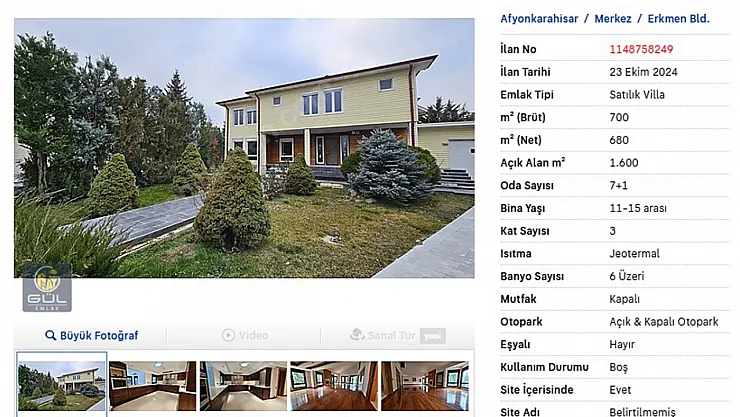 Afyonkarahisar'da bir ilan sitesi üzerinden satışa konulan villanın fiyatı, görenleri hayrete düşürdü