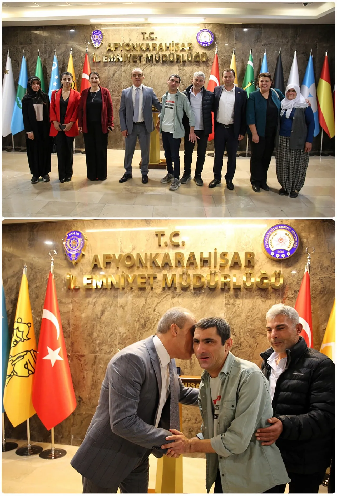 Fizik tedavi sürecinde önemli aşamalar kaydeden Fatih’in gösterdiği çaba, ailesi ve yakın çevresinin yanı sıra kentteki kurum temsilcileri tarafından da takdir edildi. Fatih Aslan ve ailesi, Afyonkarahisar Nuribey Belediye Başkanı Halil Kaya, Ulusal Otizm Konfederasyonu Genel Başkanı Fatma Kilci Kavas, Afyon Otizm Derneği Başkan Yardımcısı Mine Olucak ile birlikte Afyonkarahisar İl Emniyet Müdürü Ahmet Birtan Erol’u ziyaret etti.