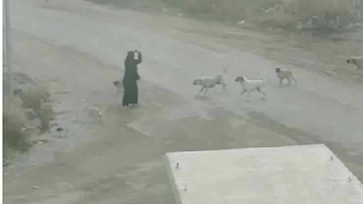 O anlar, çevredeki bir vatandaş tarafından evinin penceresinden cep telefonu kamerasıyla kaydedildi. Görüntülerde, köpeklerin kadını çevrelediği ve aracın hızla gelerek kadını kurtardığı anlar yer alıyor.