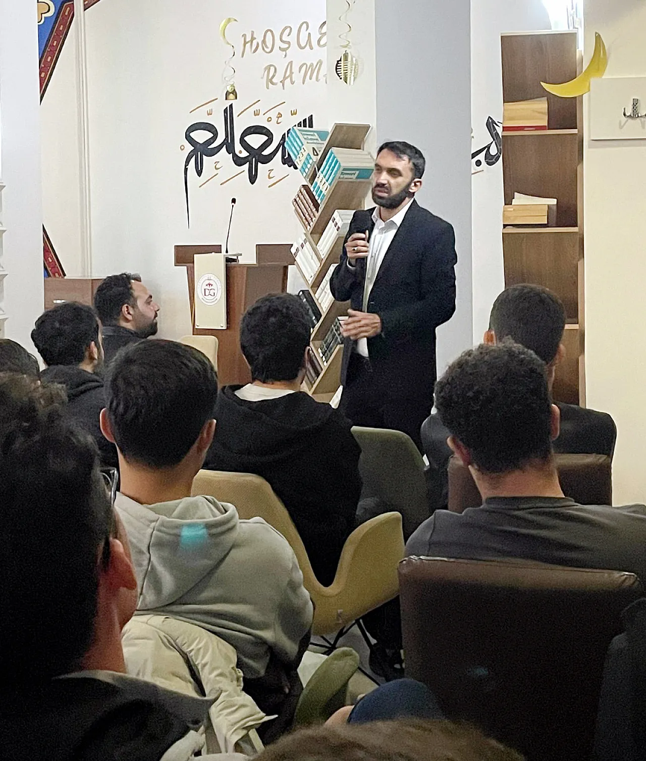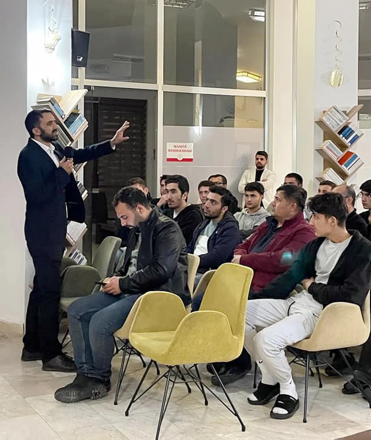 Program, gençlere yönelik yemek ikramı ile başladı. Söyleşiye İl Müftü Yardımcısı Tuğba Anatoprak, manevi danışmanlar ve çok sayıda genç katıldı.