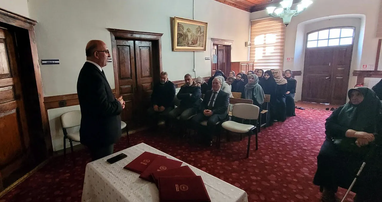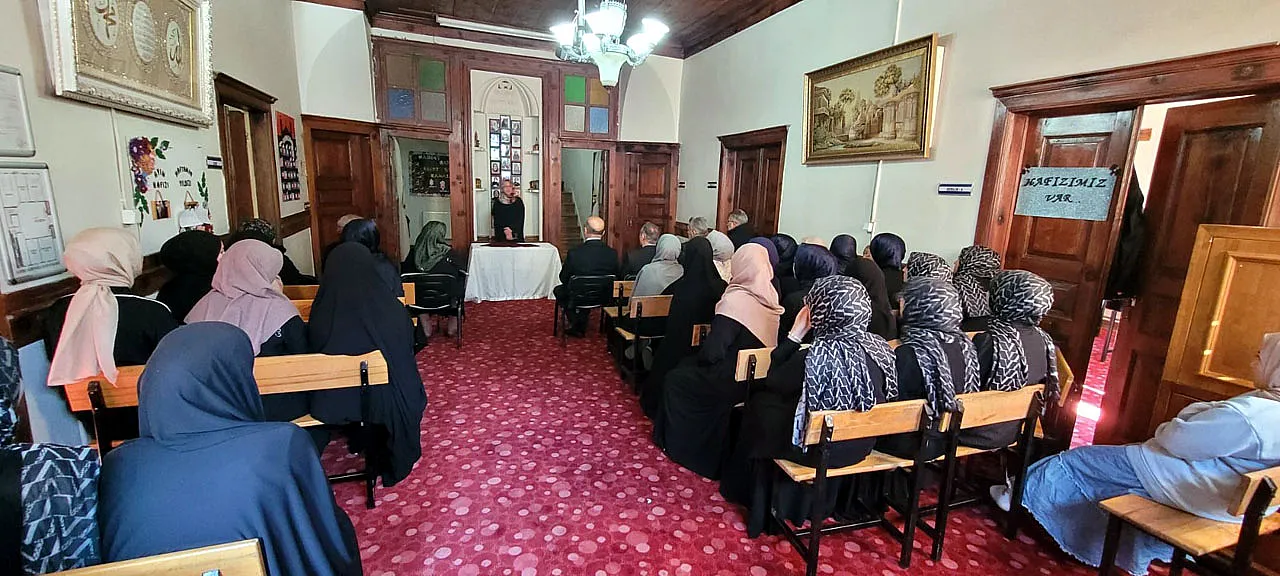 Afyonkarahisar İl Müftülüğü bünyesinde İl Merkezinde gündüzlü olarak tüm yaş grubu kadınlara yönelik hafızlık eğitimi veren Sabire Şehitoğlu Hafızlık Kız Kur'an Kursunda 2025 yılında hıfzını tamamlayarak belge almaya hak kazanan öğrenciler için İl Müftüsü Lütfü İmamoğlu, Müftü Yardımcısı Mevlüt Şahiner, Şehitoğlu ailesinden Sabire Şehitoğlu, Hüseyin Şehitoğlu, Sabri Şehitoğlu, Münevver Şehitoğlu ve öğrenci velilerinin katılımıyla belge töreni gerçekleştirildi.