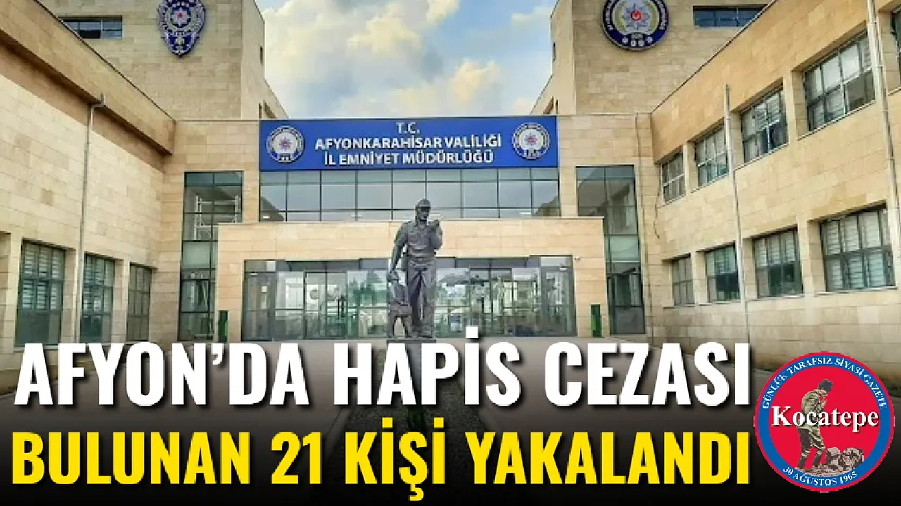 Afyonkarahisar İl Emniyet Müdürlüğü ekipleri tarafından yapılan şok uygulamalar ve kontrollerde hapis cezası bulunan 21 şahıs yakalandı