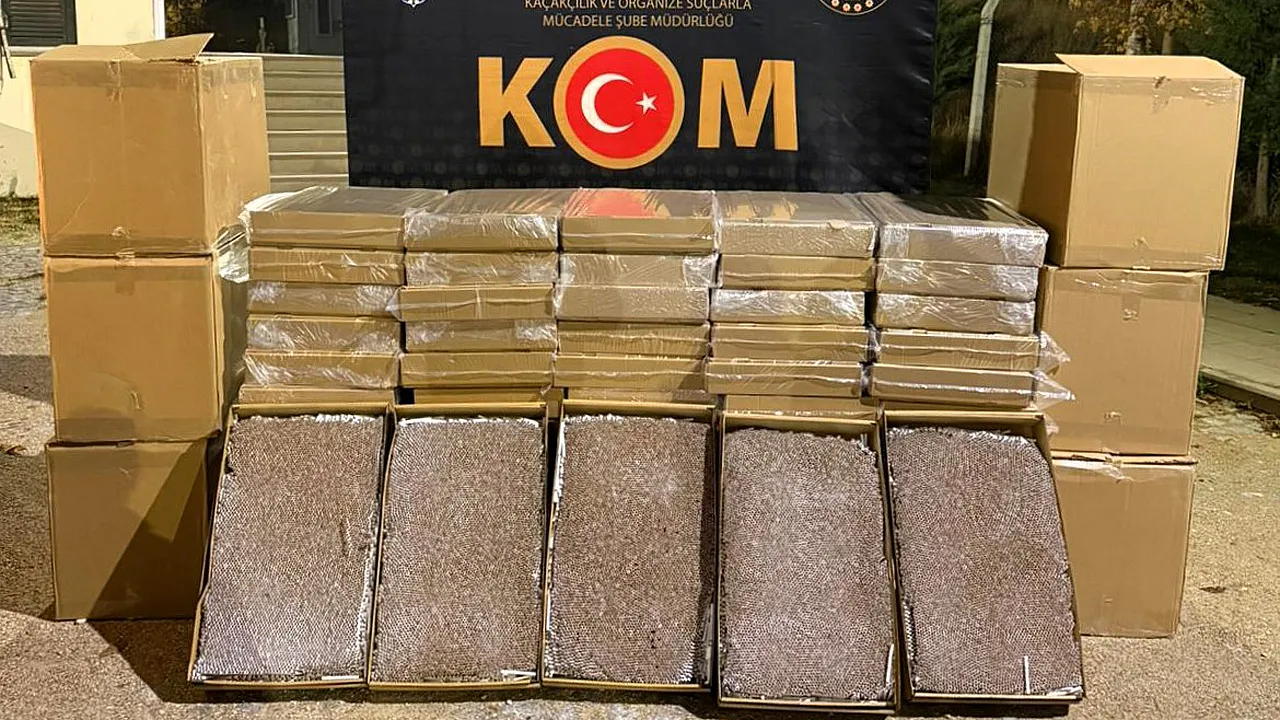 Afyon Polisi bir başka araçta da 2 bin 900 kilogram kaçak kıyılmış tütün ele geçirdi.