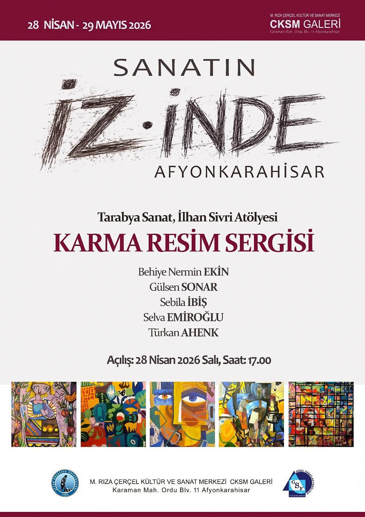 Afyon Kocatepe Üniversitesi Güzel Sanatlar Fakültesinin ev sahipliğinde düzenlenen 'Sanatın İz-inde' isimli karma resim sergisi, bugün saat 17.00'de M. Rıza Çerçel Kültür ve Sanat Merkezi'nde sanatseverlerle buluşacak.