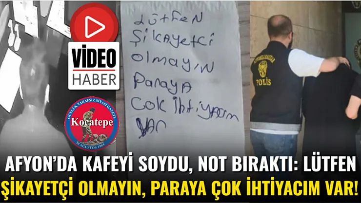 - Afyon'da Kafeyi Soydu, Not Bıraktı: Lütfen Şikayetçi Olmayın, Paraya Çok İhtiyacım Var!
