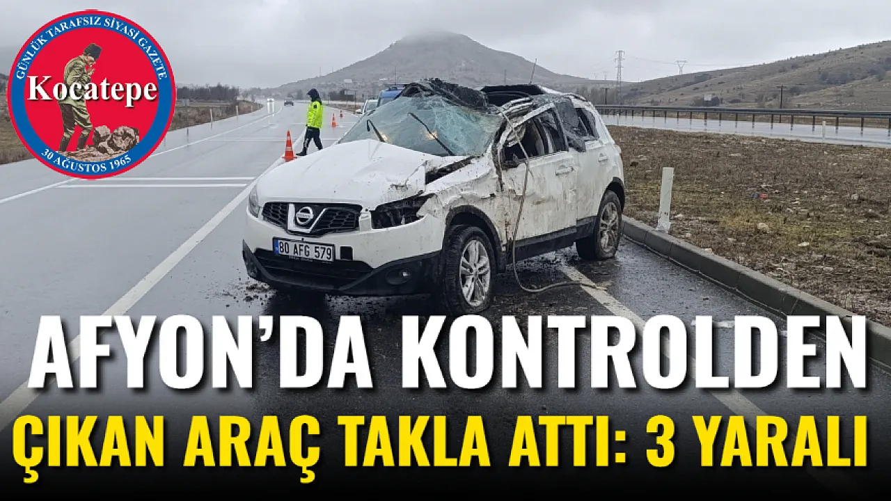 Afyonkarahisar'da kontrolden çıkarak refüje çarpıp ardından takla atan otomobilde biri ağır 3 kişi yaralandı.