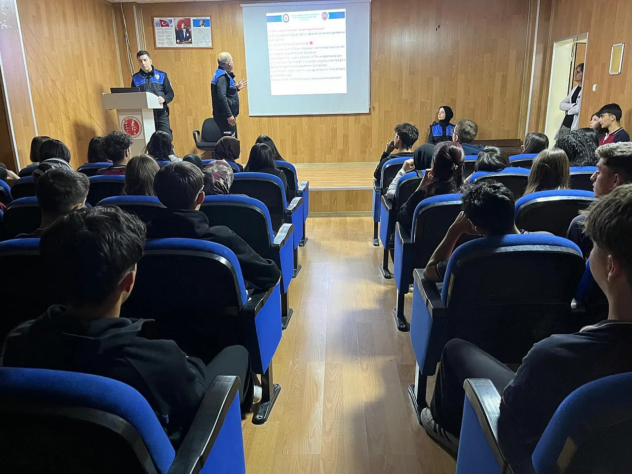 İl Emniyet Müdürlüğü görevlileri tarafından Atatürk Mesleki ve Teknik Anadolu Lisesi öğrencilerine yönelik düzenlenen programda çeşitli konularda eğitim verildi.