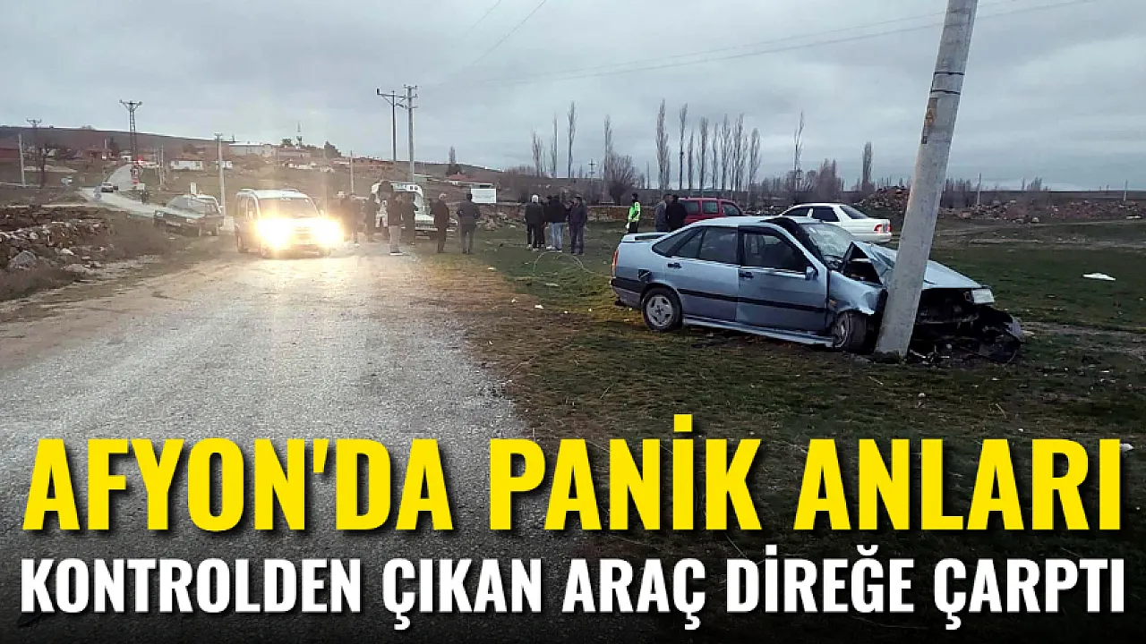 Afyon'da Panik Anları. Kontrolden Çıkan Otomobil Direğe Çarptı!