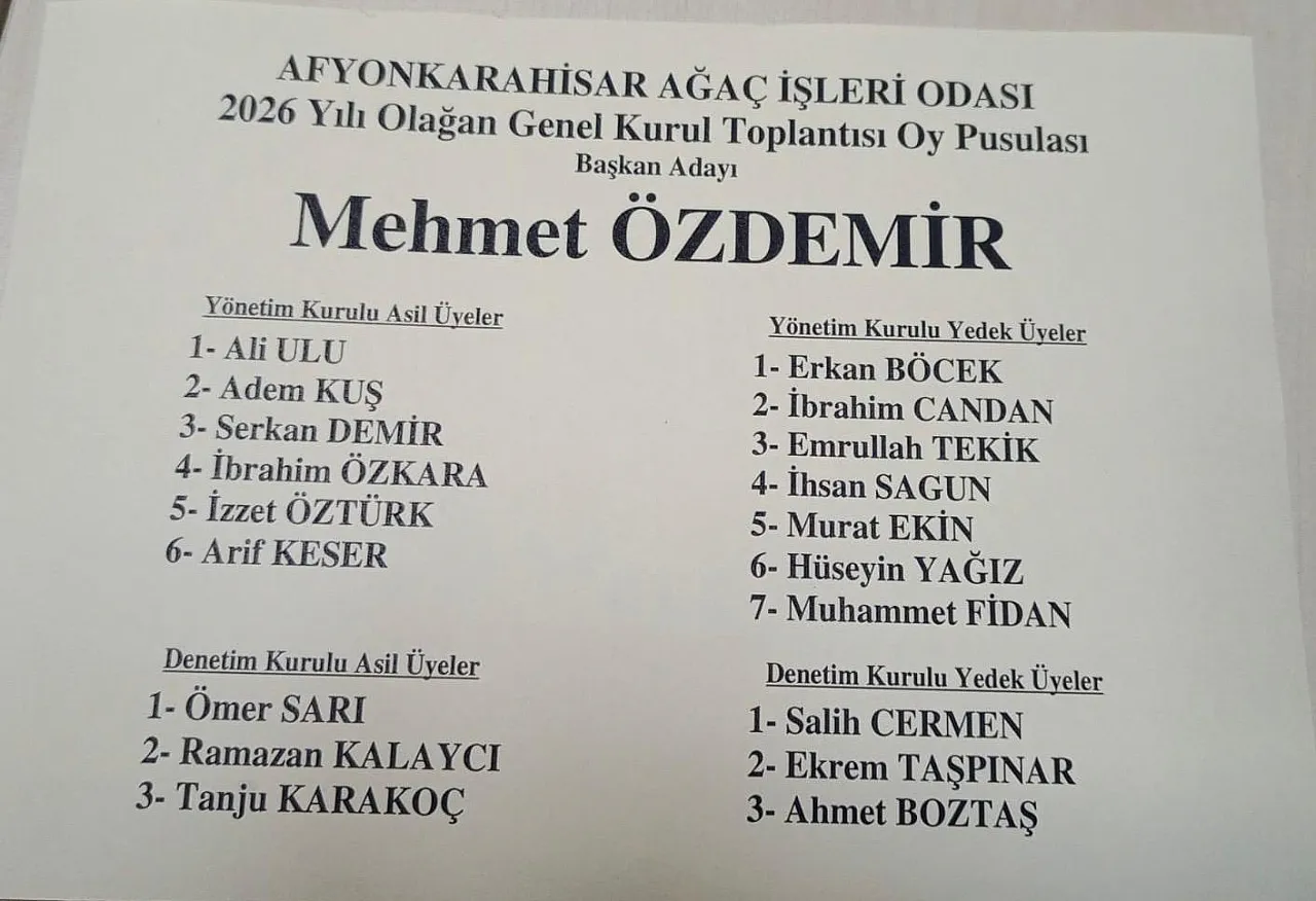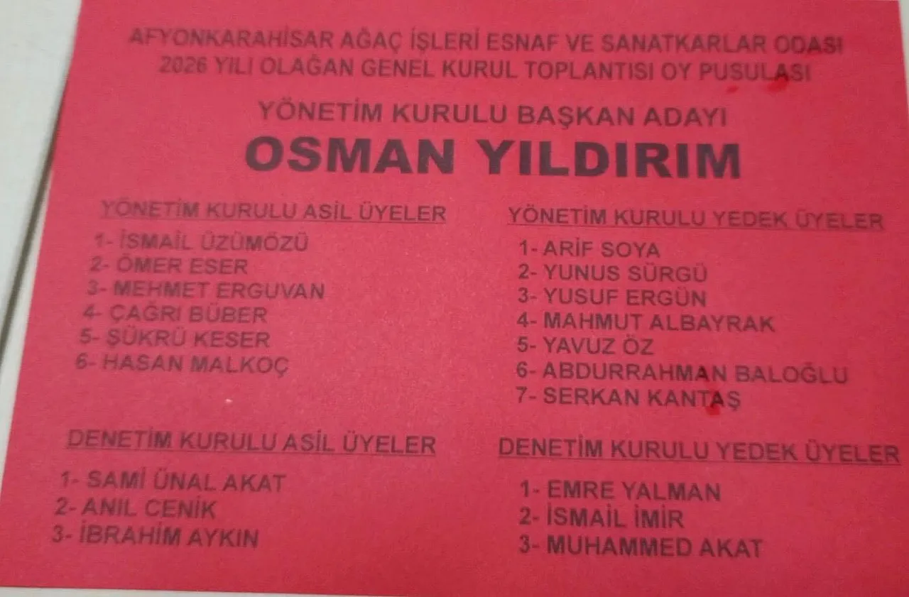 Seçime kırmızı renkli liste ile katılan Afyonkarahisar Ağaç İşleri Esnaf Odası Başkanı Osman Yıldırım’ın listesinde şu isimler var: