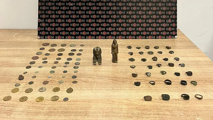 Afyonkarahisar'da polis ekiplerinin Bolvadin ilçesinde düzenlediği operasyonda, araç ve ikamette yapılan aramalarda 55 sikke, 34 yüzük ve 2 tarihi obje olmak üzere toplam 91 asırlık tarihi eser ele geçirildi.