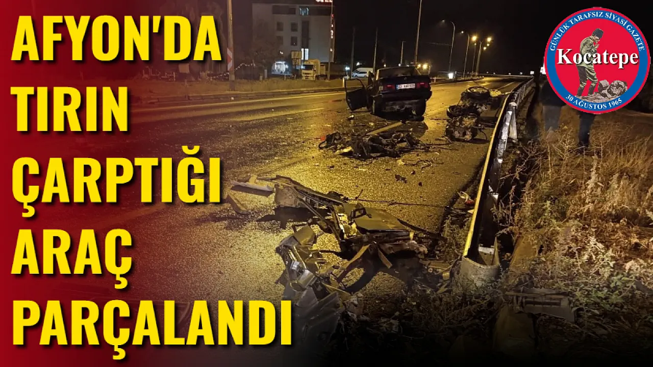 Afyon'da Tırın Çarptığı Araç Parçalandı