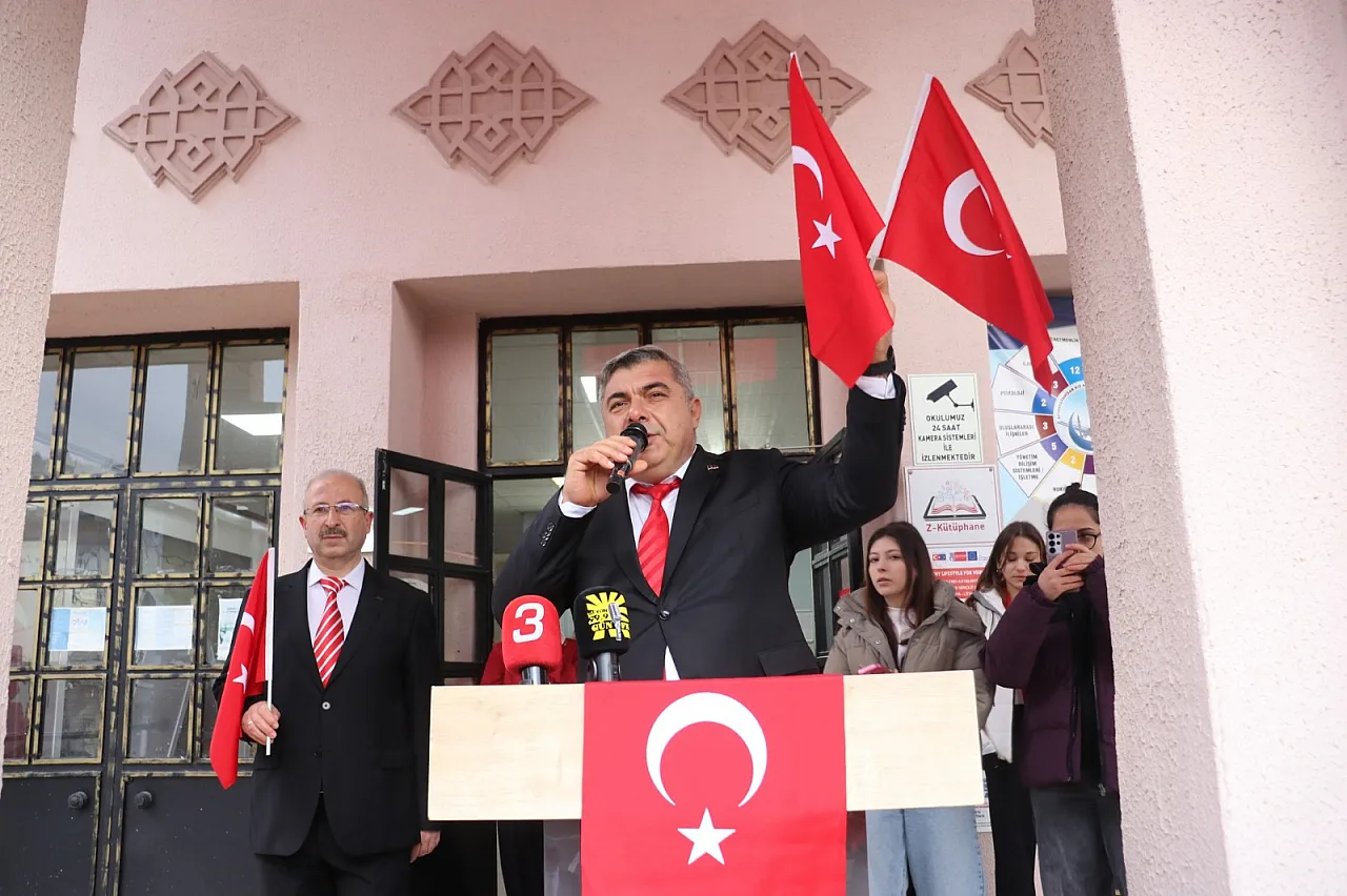 Törende konuşan İl Milli Eğitim Müdürü Miraç Sünnetci; “Bayrağımız; al rengi şehitlerimizin kanıyla sulanmış bu vatan toprağının emaneti, milletimizin onuru, bağımsızlığımızın sembolüdür. Okullarımızda bayrak törenleri sadece bir rutin değil; evlatlarımızın vatan sevgisiyle, aidiyet duygusuyla ve milli bilinçle yetişmesinin en güçlü vesilelerinden biridir. Bugün burada dalgalanan ay yıldızlı bayrağımızın gölgesinde yetişen her bir öğrencimiz, yarının Türkiye’sini inşa edecek. Bizler, değerlerine bağlı, kökleri sağlam, ufku açık bir nesil için çalışmaya devam edeceğiz.” dedi.