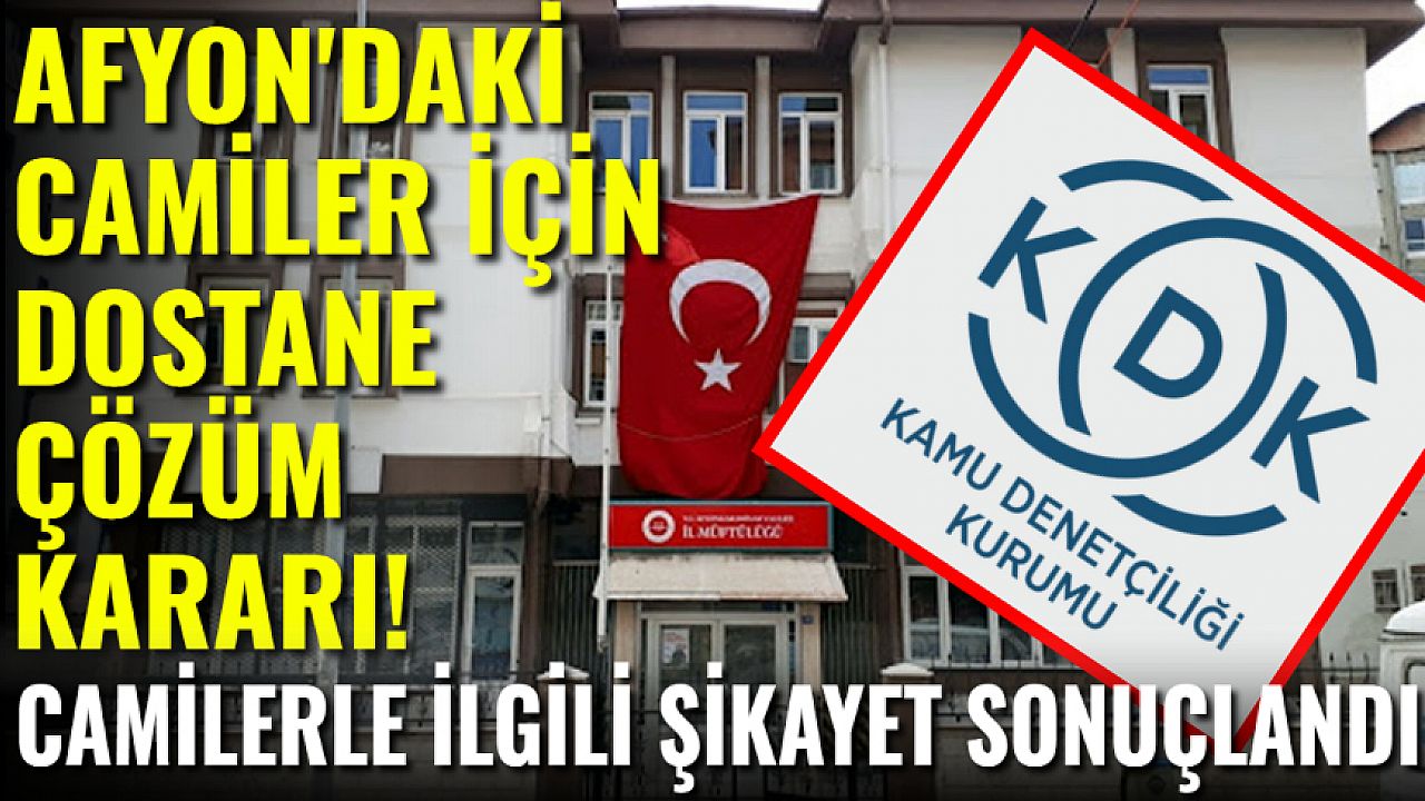 Afyonkarahisar'da bazı camilerin ana ibadet alanlarının ve şadırvanlarının vakit namazları dışında kapalı tutulduğu yönündeki başvuru üzerine Kamu Denetçiliği Kurumu (KDK) tarafından yapılan inceleme sonucunda 'dostane çözüm' kararı verildi.