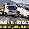 Afyonkarahisar'da 2 kişinin öldüğü 21 kişinin de yaralandığı otobüs kazasında ölenlerin kimliklerini tespit çalışmaları devam ediyor.