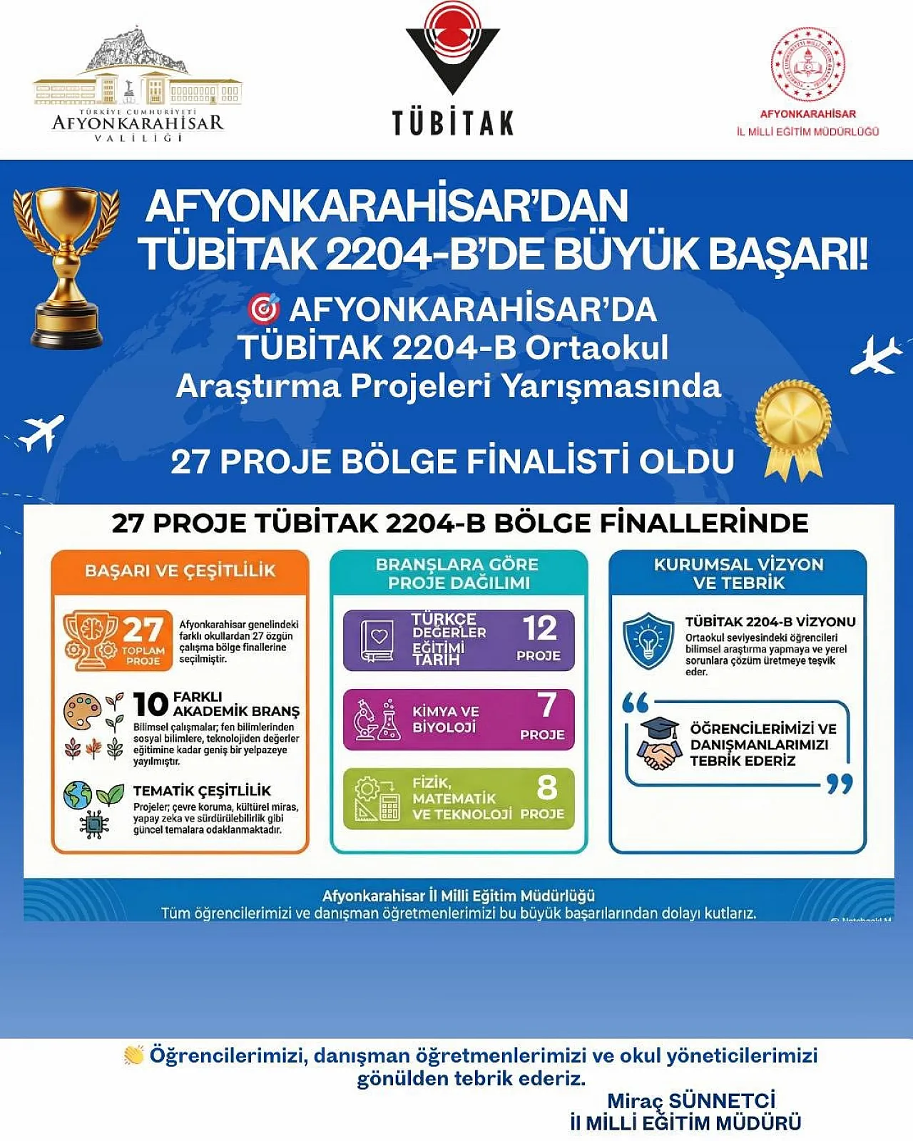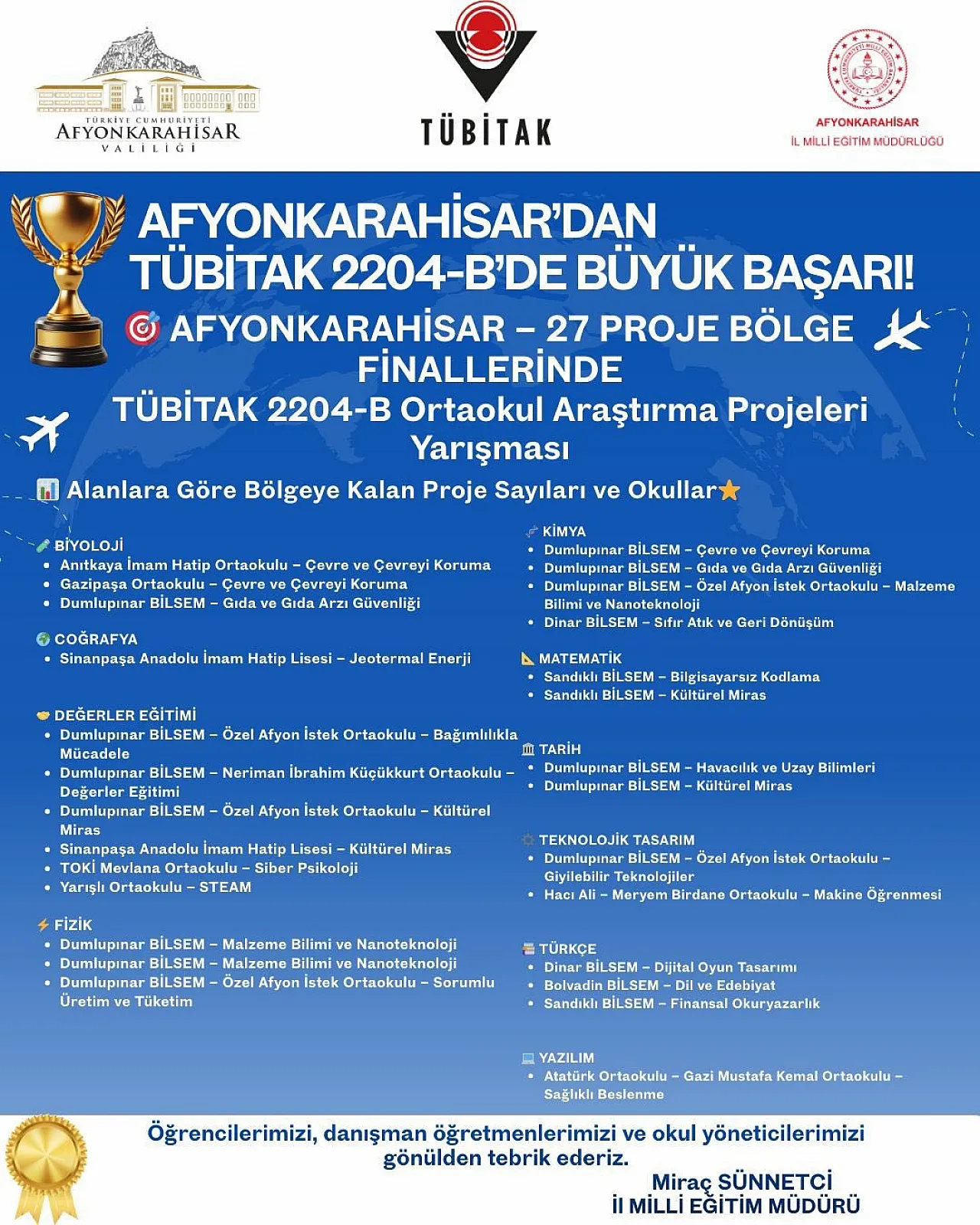 Afyonkarahisar’da TÜBİTAK 2204-B’de büyük başarı elde edildi.
