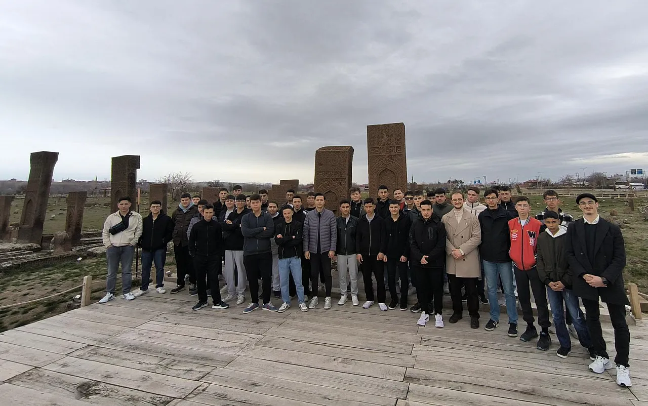 Gezinin ilk durağı olan Ahlat’ta gençler, Türk tarihinin tapusu niteliğindeki Selçuklu Meydan Mezarlığı'nı ziyaret ederek ecdat yadigarını yakından görme fırsatı buldu.