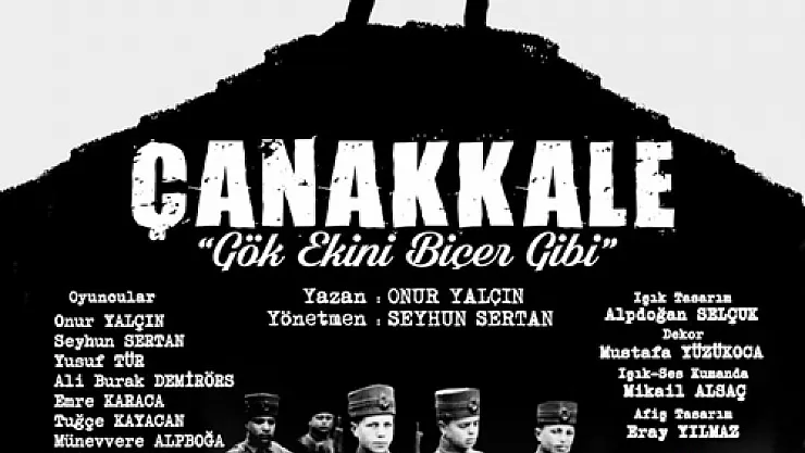 Risus Sanat Ekibi tarafından 14-21-28 Mayıs tarihlerinde Hattat Ahmet Karahisari Kültür ve Sanat Merkezi’nde sergilenecek olan tiyatro oyununda yakın tarihimizin önemli destanlarından biri olan Çanakkale Savaşı konu alınıyor. “Seyit Onbaşı’dan Nusret Mayın Gemisi’ne, Onbeşlilerden kadın kahramanlarımıza ve elbette Mustafa Kemal Atatürk ve silah arkadaşlarına, kahraman ecdadımıza, aziz şehitlerimizin ruhlarına bir saygı duruşu” olarak tanımı yapılan oyunu Onur Yalçın yazdı. Oyun kadrosu şu isimlerden oluşuyor: Yönetmen: Seyhun Sertan, Işık Tasarım: Alpdoğan Selçuk , Dekor: Mustafa Yüzükoca, Işık-Ses Kumanda: Mikail Alsaç, Afiş Tasarım: Eray Yılmaz
