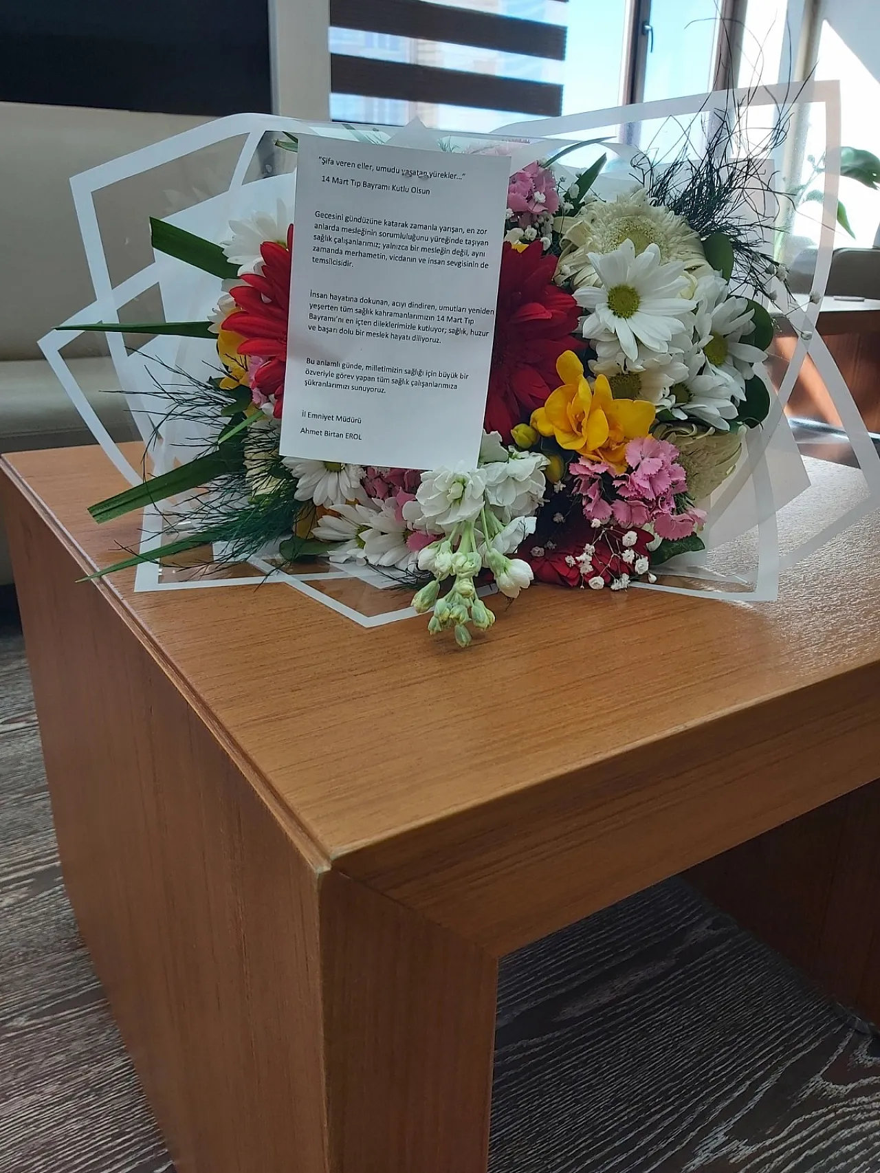 Afyonkarahisar İl Emniyet Müdürü Sayın Ahmet Birtan Erol, 14 Mart Tıp Bayramı dolayısıyla İl Sağlık Müdürü Dr. Hakkı Öztürk nezdinde şehirde görev yapan tüm sağlık çalışanlarının Tıp Bayramı'nı zarif bir çiçek buketi ile kutladı.