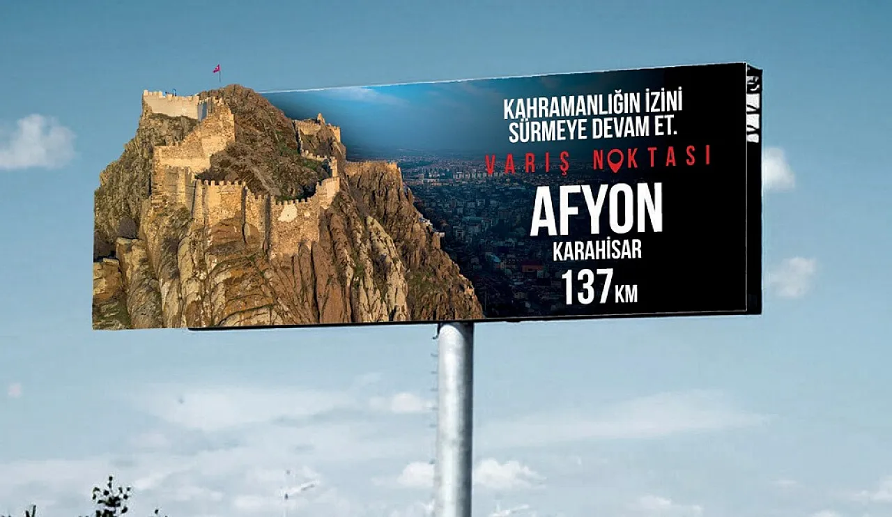 “Varış Noktası Afyonkarahisar. Ana görselimizi uyarladığımız billboardlarımızda tüm şehre sesleniyoruz: Eşsiz mutfağımızın tadına, sağlıklı yaşama hedefimize, sanatın keyfine,