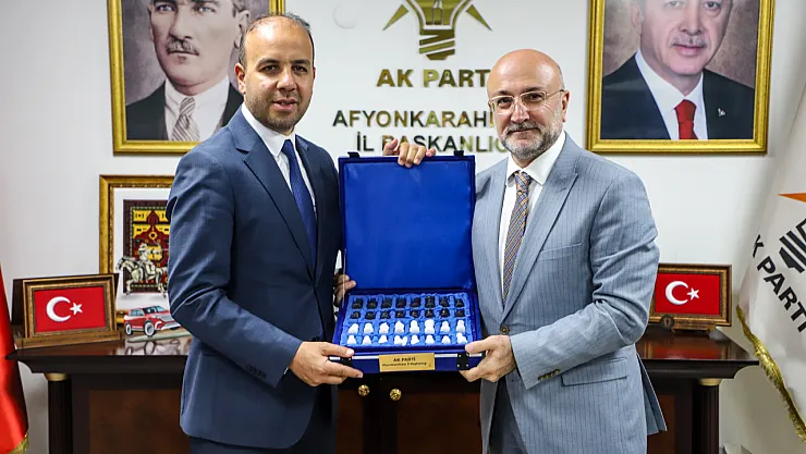 AK Parti Afyonkarahisar İl Başkanı Av. Turgay Şahin’le makamında görüşen AK Parti Afyonkarahisar İl Koordinatörü ve 27. Dönem Niğde Milletvekili Selim Gültekin’e, yöreye özgü mermer satranç takımı hediye edildi.