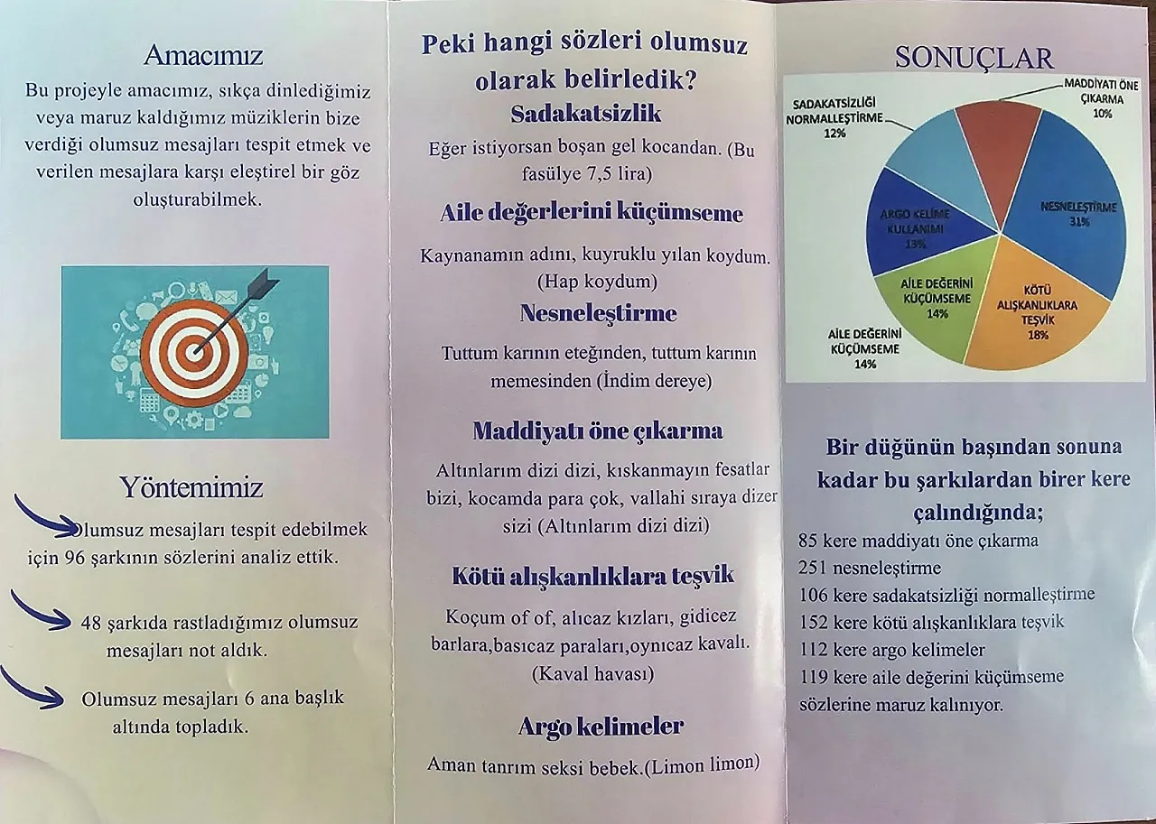 Ziyarette öğrenciler İl Milli Eğitim Müdürü Miraç Sünnetci ile projelerinin konusu olan “Düğün Müziklerinde Aileyi Olumsuz Etkileyecek Unsurlar, Aile Değerleri Üzerindeki Muhtemel Riskler ve Verilen Mesajlar” üzerine sohbet ettiler.