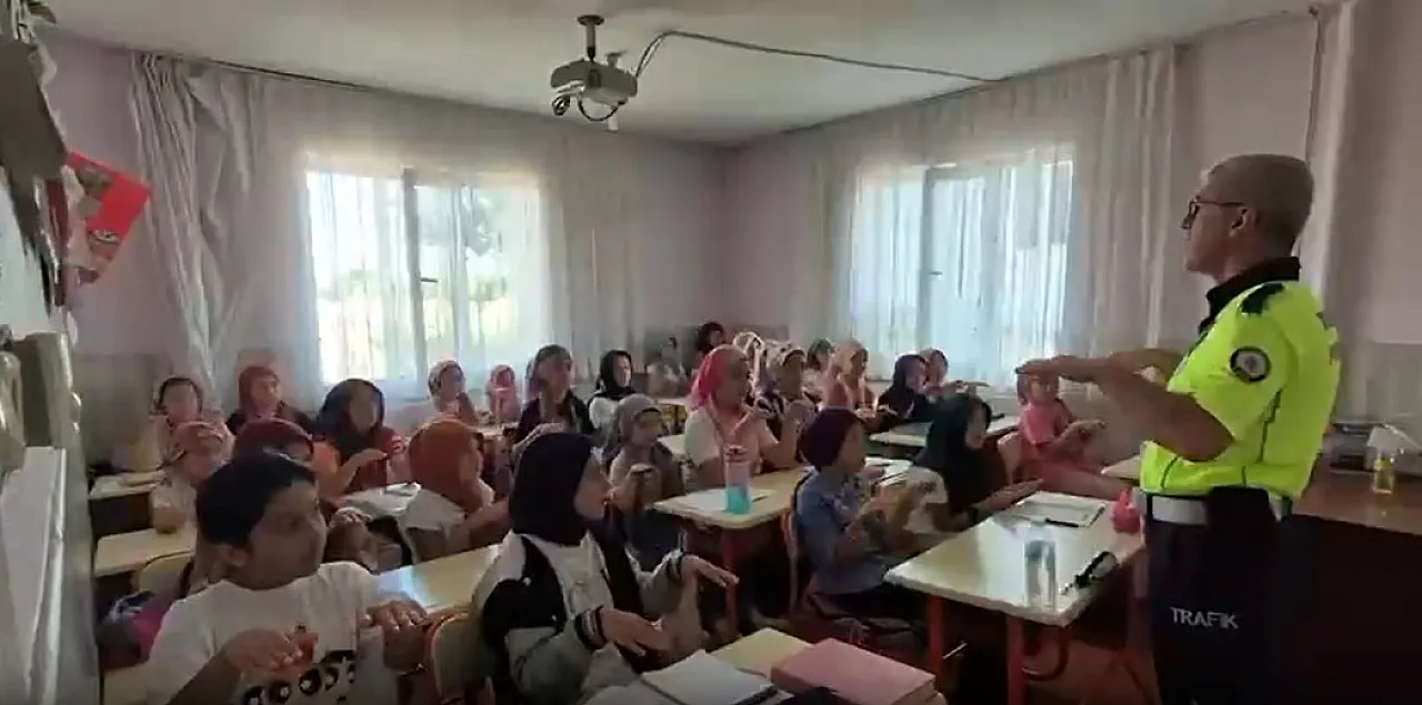 Afyonkarahisar İl Emniyet Müdürlüğü ekipleri, yaz Kur'an kursuna giden çocuklara uygulamalı ve teorik trafik eğitimi verildi.