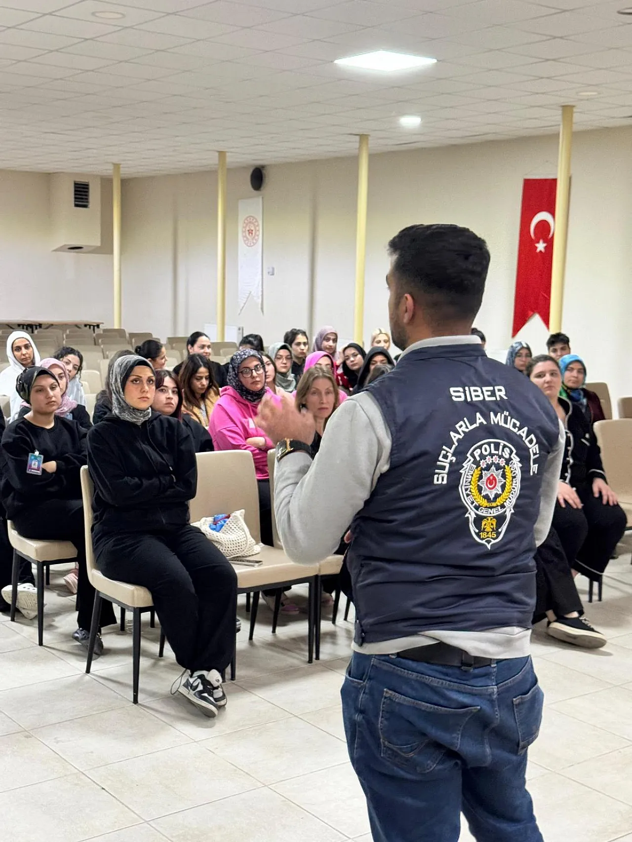Afyonkarahisar İl Emniyet Müdürlüğü görevlileri tarafından “SİBERAY” programı kapsamında yapılan çalışmalarda; siber Suçların gerçekleşmeden engellenmesi, maddi manevi zararların en aza indirgenmesi, farkındalık ve bilinçlendirme faaliyetleri yapılması amacıyla öğrenciler bilgilendirildi.