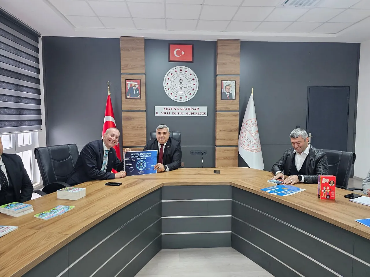Ziyaretin ardından Afyonkarahisar İl Mili Eğitim Müdürü Miraç Sünnetci ve Eğitimci- Yazar Orhan Toker, Şube Müdürü Hayati Duman ve AR-Ge Birimi yetkilileriyle birlikte “Dijital Dünyada Bilinçli Nesiller Projesi”nin içeriğine yönelik fikir alışverişinde bulunuldu.