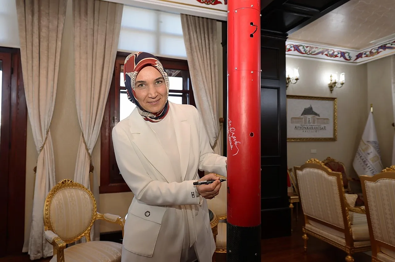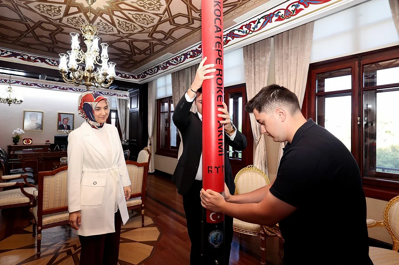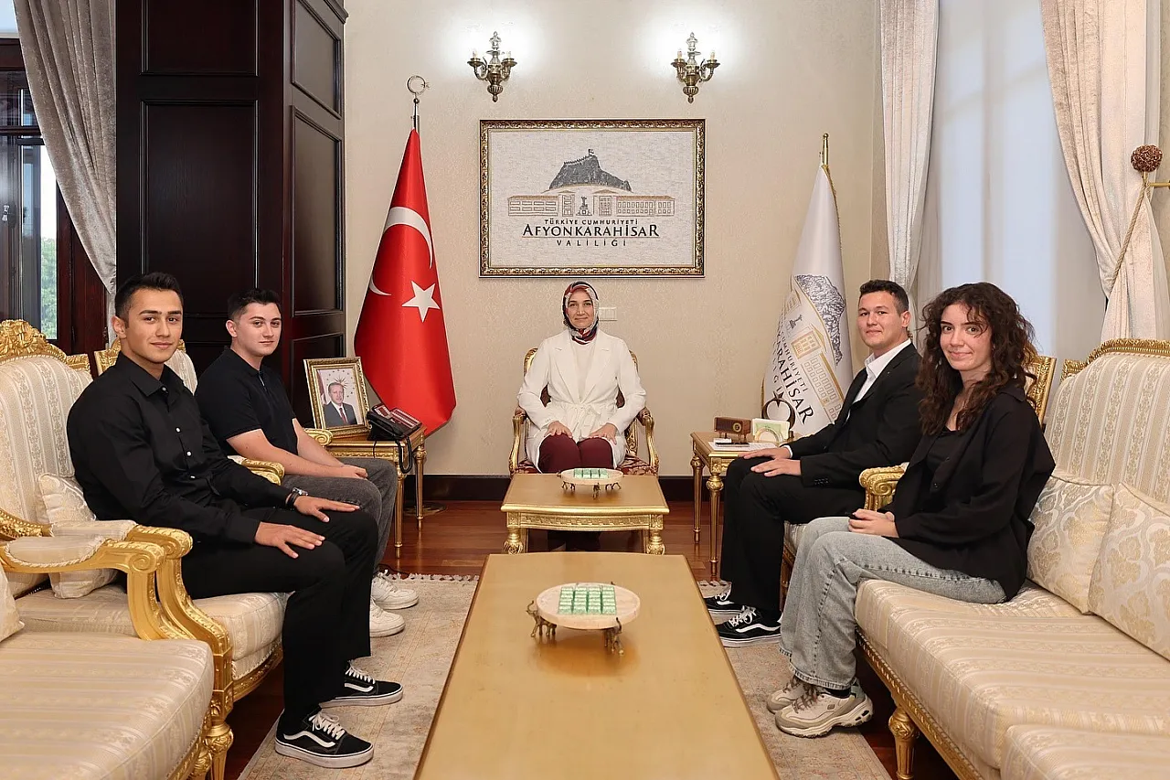 Kocatepe Roket Takımı üyeleri, Afyonkarahisar Valisi Doç. Dr. Kübra Güran Yiğitbaşı'nı ziyaret etti. Vali Yiğitbaşı, En İyi Görsel Medya Ödülü'nü alan rokete hatıra imzası attı