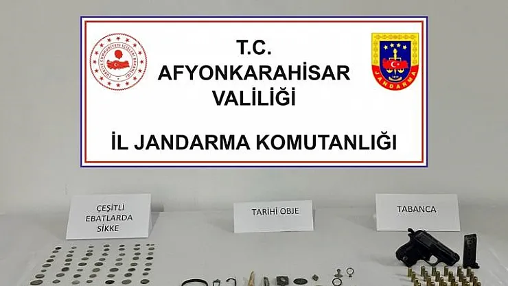 Afyonkarahisar'da jandarma tarafından bir eve yapılan baskında 25 tarihi obje ile birlikte 78 adet tarihi sikke ele geçirilirken, olayla ilgili 3 kişi gözaltına alındı.