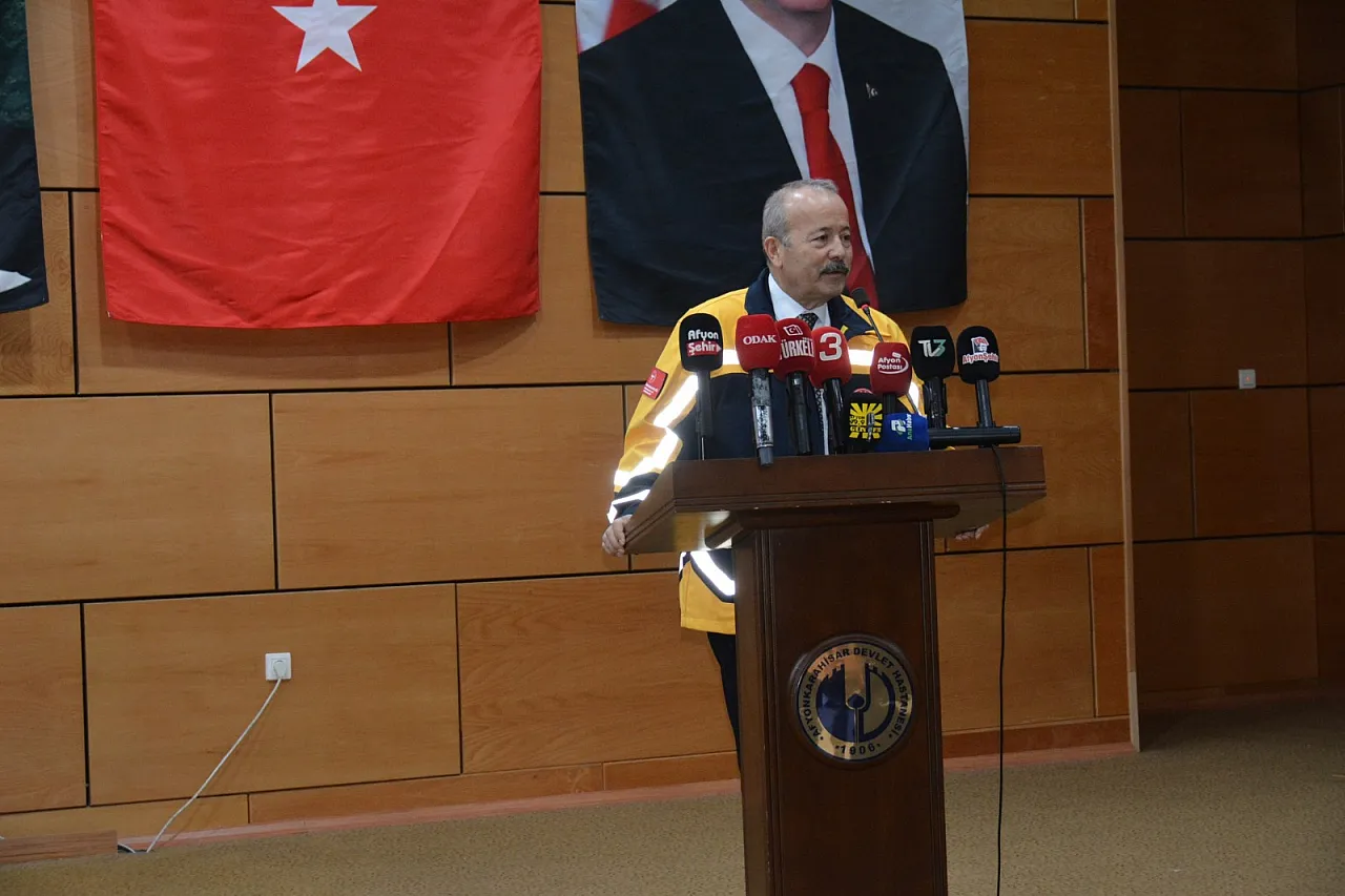 Bu coğrafya hiç rahat olmamış, sürekli zorlukların içerisinde var olmuş. Ama Türk milleti burada, bu coğrafyada olduğu sürece de bu zorlukların üstesinden gelmek de bizim boynumuzun borcudur. Bir anekdottan söz edeceğim. 1999 depreminde ekip olarak Adapazarı'nda görevlendirildik. Sandıklı Devlet Hastanesinde 3 ekip gitmiştik. O zaman ambulansların içi boştu. İçinde tansiyon aletinden, stetoskopa kadar malzeme yoktu. Ben Adapazarı Devlet Hastanesi'nin çökmek üzere olan ameliyathanesine girerek malzemeleri tedarik edip ambulansa yerleştirdim ve vakaya gittim. Nereden nereye? Fakat o durumda da biz yine ağzımız açık izlemiştik. İsrail ekibi geldi. Kim olursa olsun o durumda hizmet verenden Allah razı olsun. Ama İsrail ekibi geldi ve bir gün sonra ameliyathanesini kurarak çadırda hizmet vermeye başladı. Biz şu anda Türkiye Cumhuriyeti olarak bunu İsrail'den ya da başka ülkelerden, Amerika'dan, Almanya'dan çok daha iyi durumda yapabilecek pozisyondayız. Afetlerde, acil durumlarda ameliyathanelerimizi kurarak hizmete alabiliyoruz. Bunlar ekiplerin ve donanımların sayesinde, Sağlık Bakanlığımızın ve devletimizin sayesinde oluyor. Tabi en önemlisi de 112 Acil Servis ekiplerimizin, sağlık çalışanlarımızın sayesinde olmaktadır. İlimize tahsis edilen ambulansların hayırlı hizmetlerde kullanılmasını ve inşallah az işe ihtiyaç duyulmasını diliyorum. 24 saat 112 ekiplerinin varlığını, sıcaklığını duymakta vatandaşlarımız için kıymetlidir.”