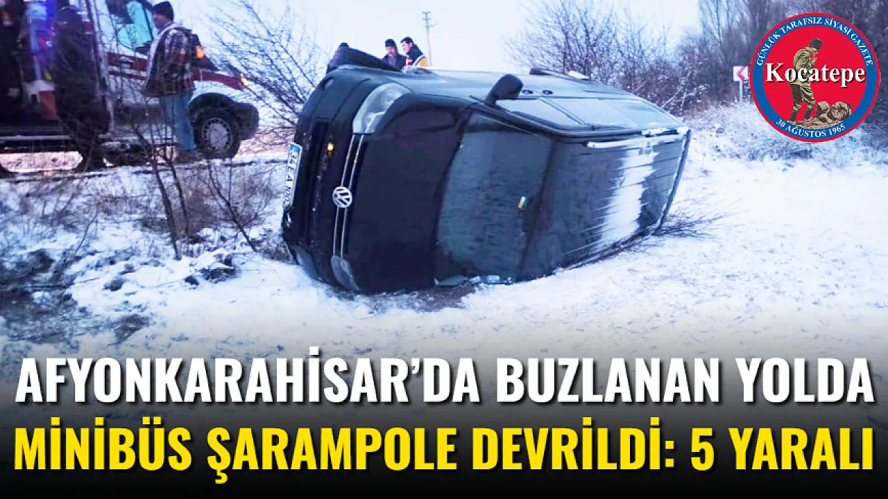Afyonkarahisar'da yağan kar sonrası buzlanan yolda kayan minibüsün şarampole devrilmesi sonucu yaşanan trafik kazasında 5 kişi yaralandı.