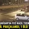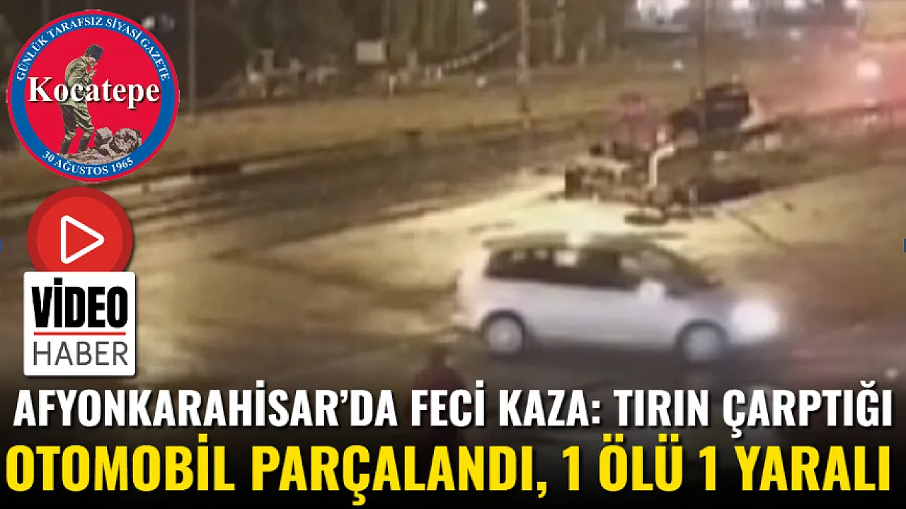 Afyonkarahisar'da bir tırın akaryakıt istasyonundan kontrolsüz şekilde çıkan otomobile çarparak parçaladığı anlar saniye saniye güvenlik kameralarına yansırken kazada 1 kişi öldü, 1 kişi ağır yaralandı.