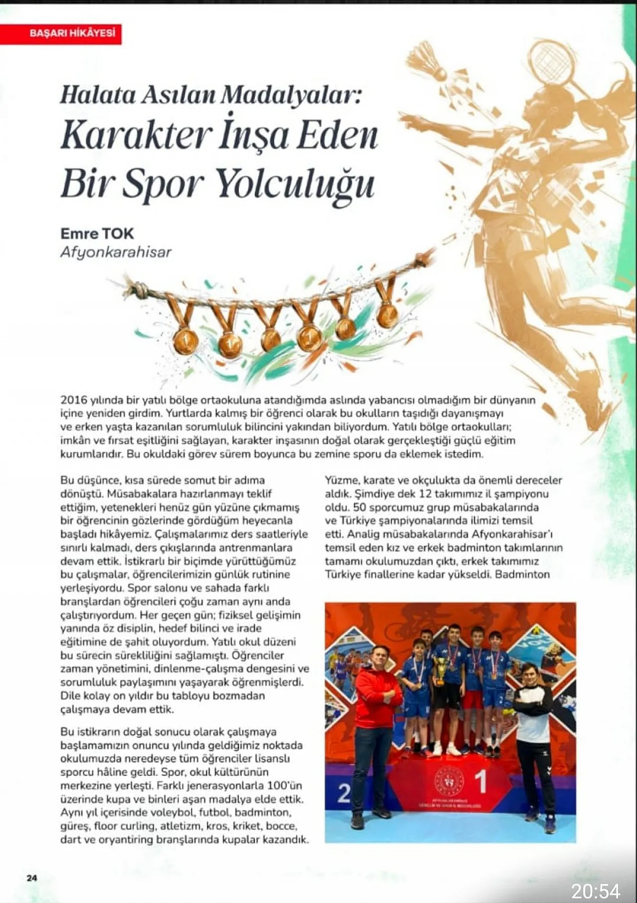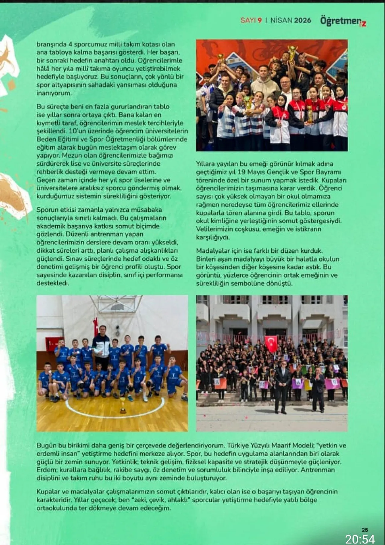 Nisan 2026 döneminde yayınlanan derginin 9. sayısında Afyonkarahisar’da görev yapan iki öğretmen de yer aldı. Öğretmenlerden Emre Tok başarı hikâyesini anlatırken diğer öğretmen Egemen Serin anı alanında dergide yer aldılar.