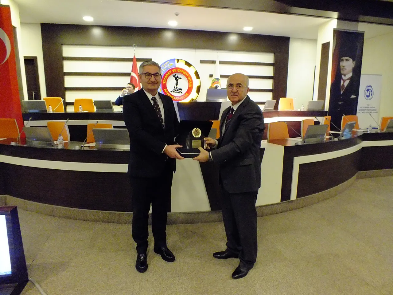 Program sonunda, Oda Başkanı Erdal Sayar tarafından Konya Denetim Daire Başkanı Haluk Özyürek’e katkılarından dolayı plaket takdim edildi. Ayrıca Konya Denetim Daire Başkan Yardımcısı Volkan Kalfaoğlu’na plaketini Afyonkarahisar Defterdarı İbrahim Gündüz takdim etti.
